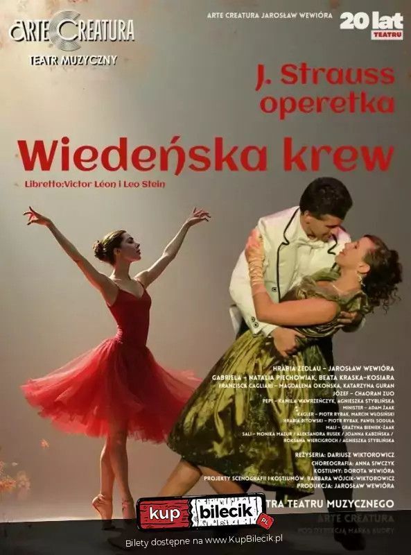 Jedyna w Polsce okazja, by zobaczyć roztańczony spektakl operetkowy pt. "Wiedeńska krew" Johanna Straussa w znakomitym wykonaniu. Na scenie w rytmie walca pulsuje gorąca wiedeńska krew głównych bohaterów, rozbrzmiewają cudowne głosy i znane na całym świecie melodie. Każdy spektakl kończy się owacjami na stojąco i na długo zapada widzom w pamięć. Przedstawiamy pełny spektakl muzyczny z zachwycającymi, barwnymi kostiumami, dopracowaną choreografią i niebanalną scenografią, bez skrótów i okrojonych wersji koncertowych! Na scenie występują soliści międzynarodowych scen muzycznych, laureaci konkursów wokalnych, którzy zachwycają widzów znakomitymi głosami, bawią do łez perypetiami głównych bohaterów i przenoszą do roztańczonego Wiednia. Towarzyszy im znakomita Orkiestra Teatru Arte Creatura złożona z wybitnych muzyków, wirtuozów swych instrumentów pod dyrekcją uznanych dyrygentów.