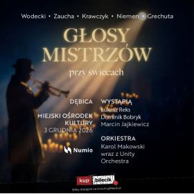 bilety: Zapraszamy na wyjątkowy koncert, który przeniesie Cię w magiczną podróż przez serce polskiej muzyki. Usłyszysz głosy światowej klasy artystów w ponadczasowych kompozycjach Zbigniewa Wodeckiego, Andrzeja Zauchy, Krzysztofa Krawczyka, Czesława Niemena i Marka Grechuty, prezentowanych w zupełnie nowej odsłonie. Doskonałą oprawę muzyczną zapewni Karol Makowski i Unity Orchestra - spektakl porównywalny z największymi światowymi scenami. Głosy mistrzów przy świecach artyści: Jasiek Piwowarczyk, Marcin Jajkiewicz, Dominik Bobryk, Łukasz Reks, Karol MakowskiW programie znajdą się ponadczasowe kompozycje Zbigniewa Wodeckiego, Andrzeja Zauchy, Krzysztofa Krawczyka, Czesława Niemena i Marka Grechuty — w nowych aranżacjach autorstwa Karola Makowskiego, wykonanych przez Unity Orchestra. Bilety do nabycia na: KupBilecik.pl |
